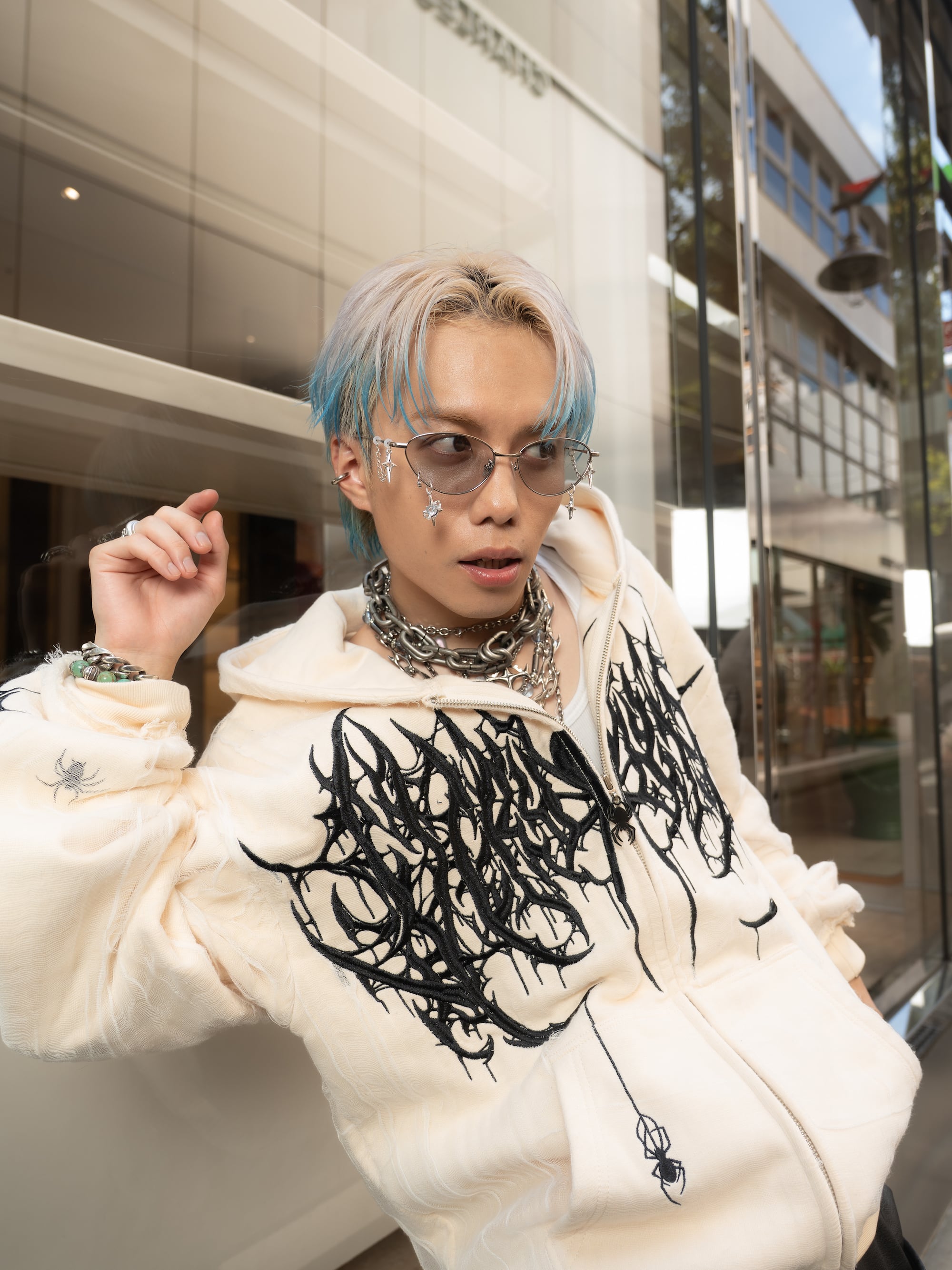 【Metal Square×Pierce Hole】 人気の「Metal Square」から、ピアスホールカスタムを施した新シリーズが登場! ミニマルなシルエットに、レンズに施されたピアスチャームを組み合わせたトレンドデザイン。 無機質な中に個性を感じるデザインは、Y2Kスタイルにもノームコアにもマッチします。 シンプルながらも存在感があり、日常のスタイリングをアップデートします。 -Size- Front: 135mm Side: 140mm